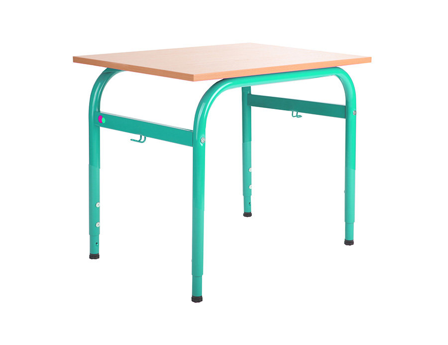 - Stelaż ławki posiada wieszak na tornister oraz stopki z regulacją zabezpieczające podłoże przed zarysowaniem .